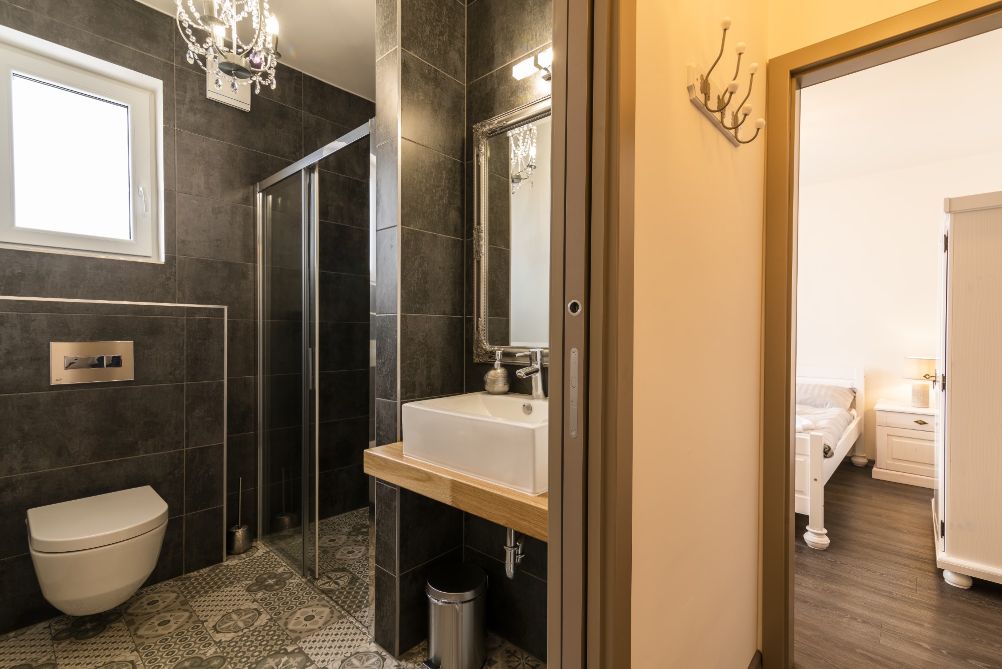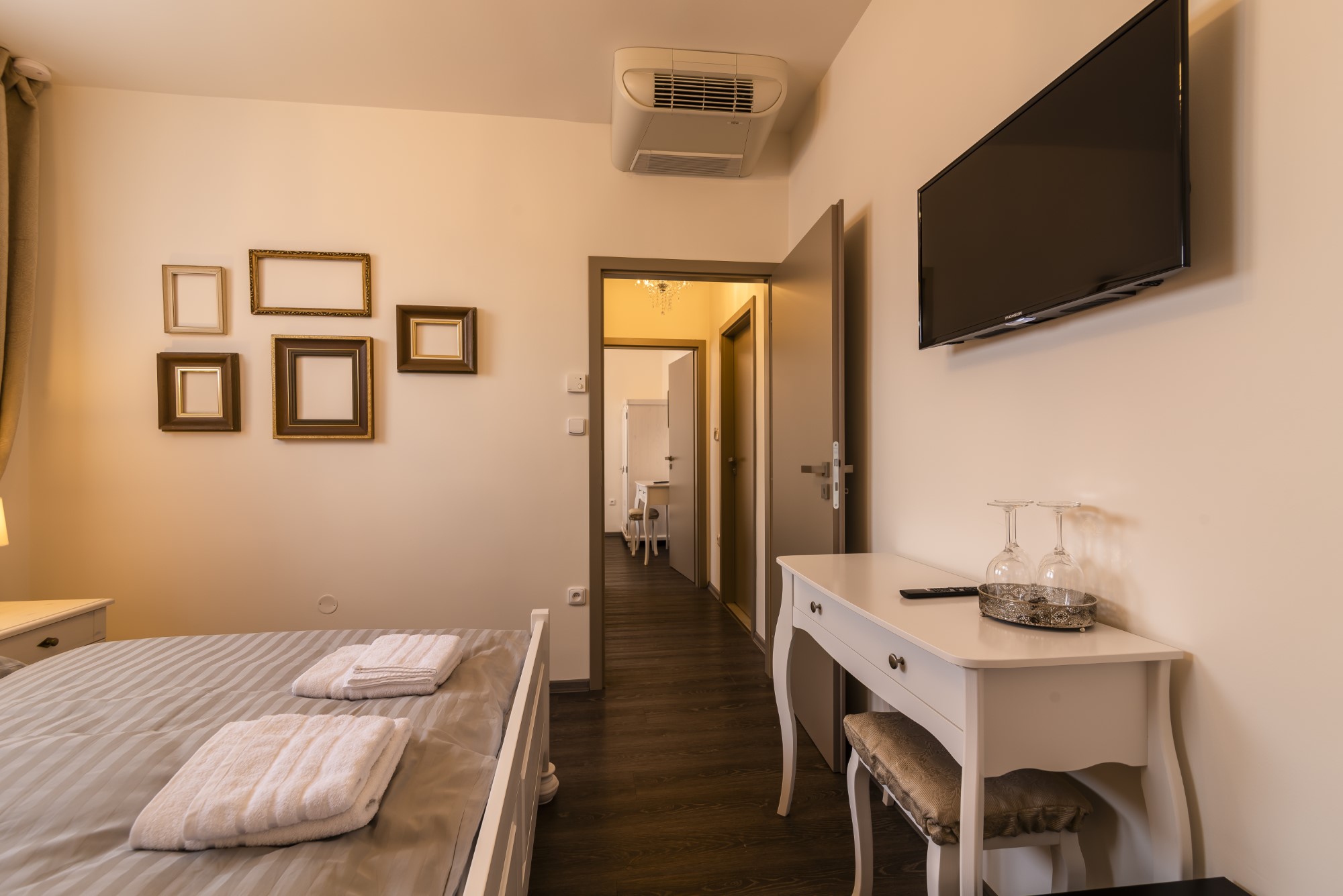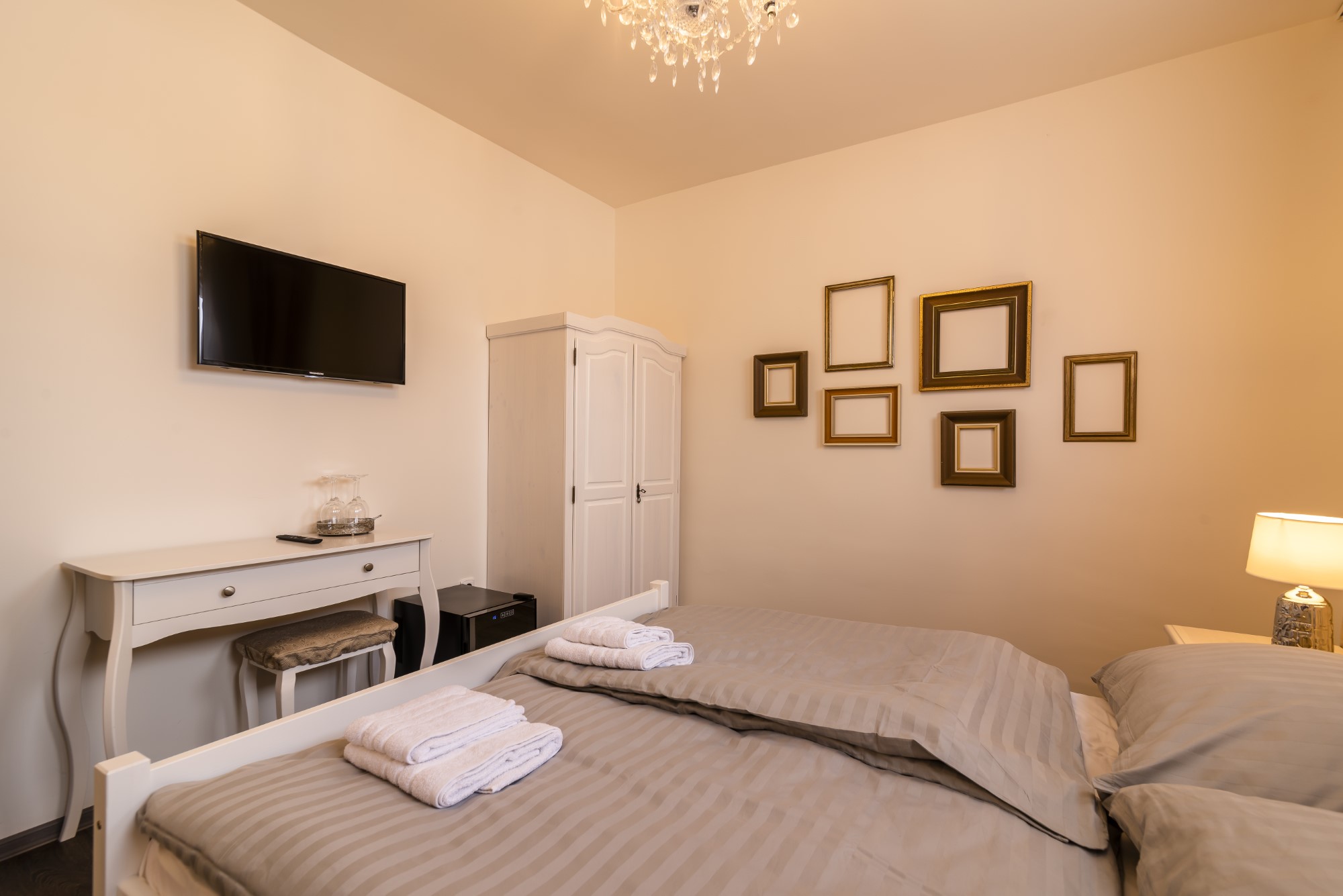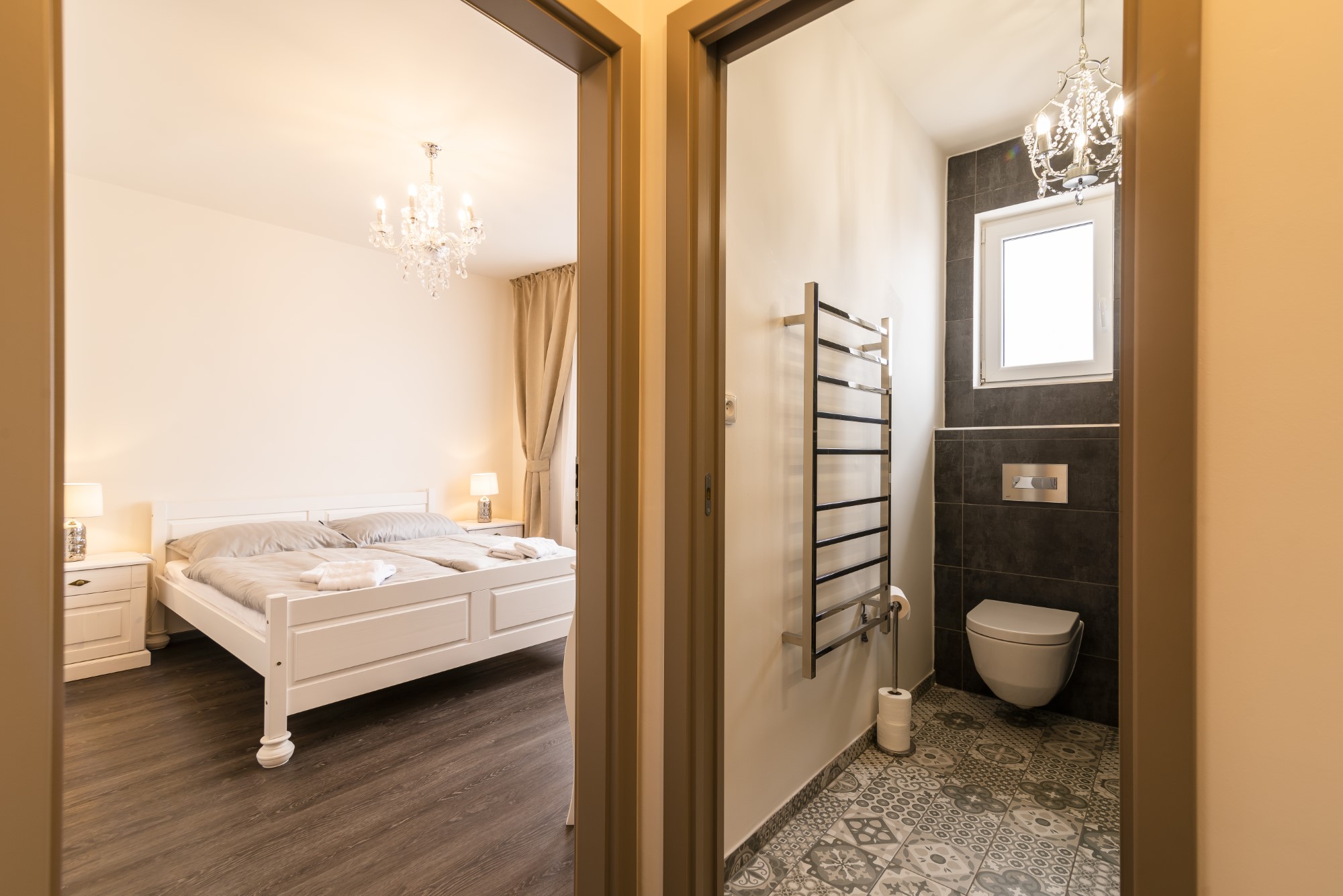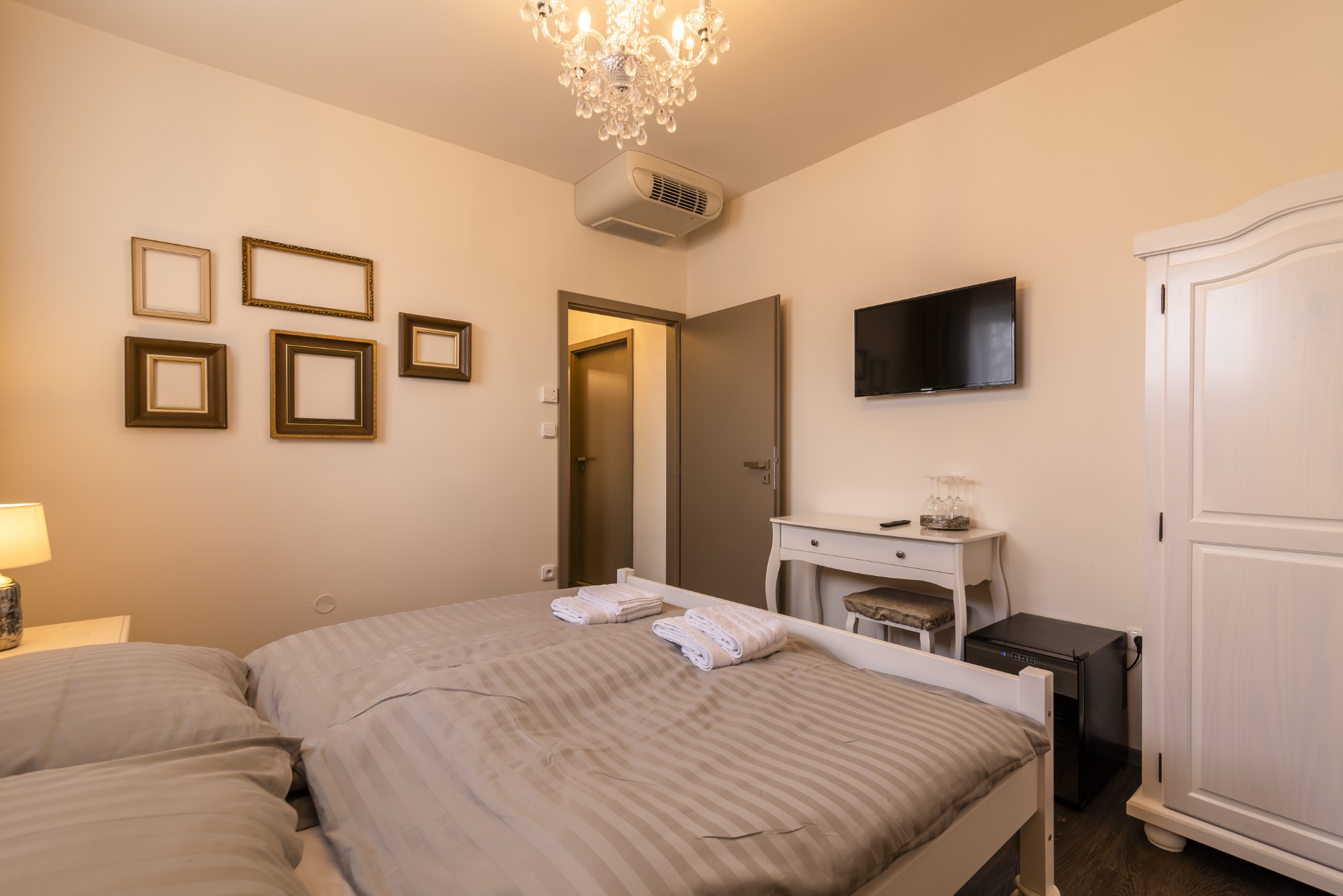 Dvoulůžkový pokoj s manželskou postelí, krásnou koupelnou a vlastní vinotékou vám nabídne nekonečné pohodlí a prostor pro nové zážitky.