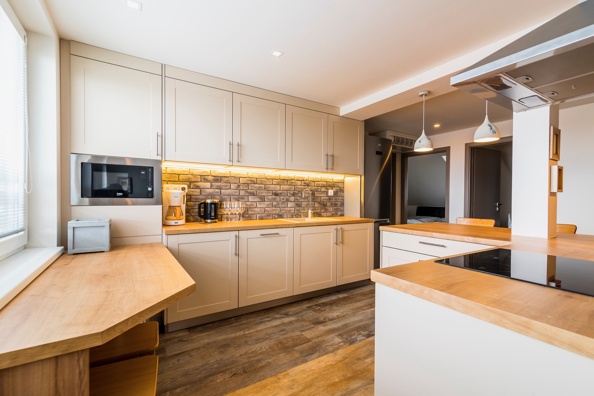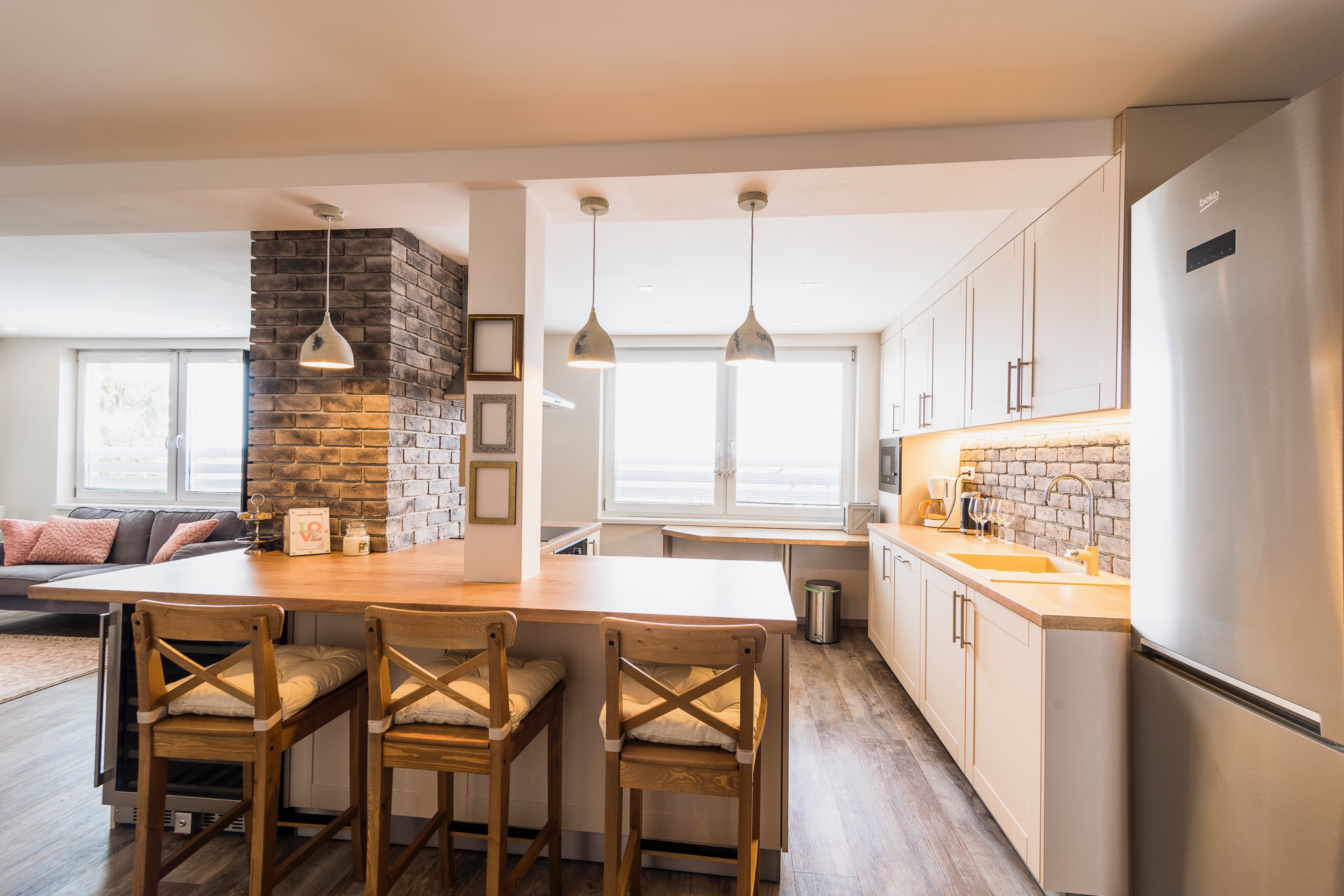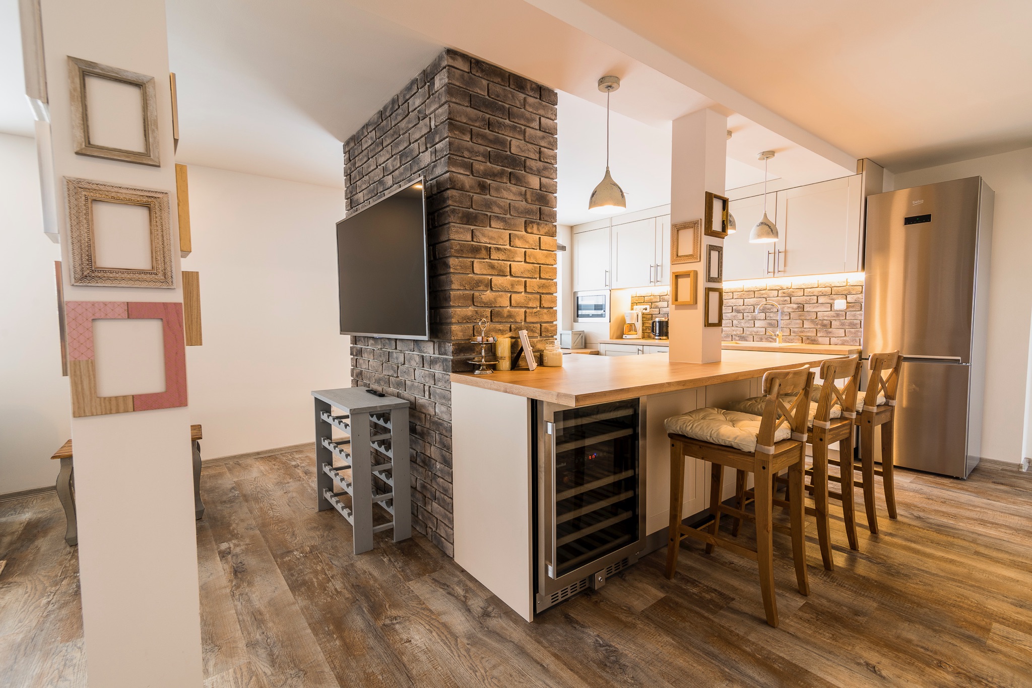Centrální obývací pokoj je synonymem pohodlí a příjemného luxusu. V kuchyni najdete vše potřebné k vaření i degustaci vín Honoré.