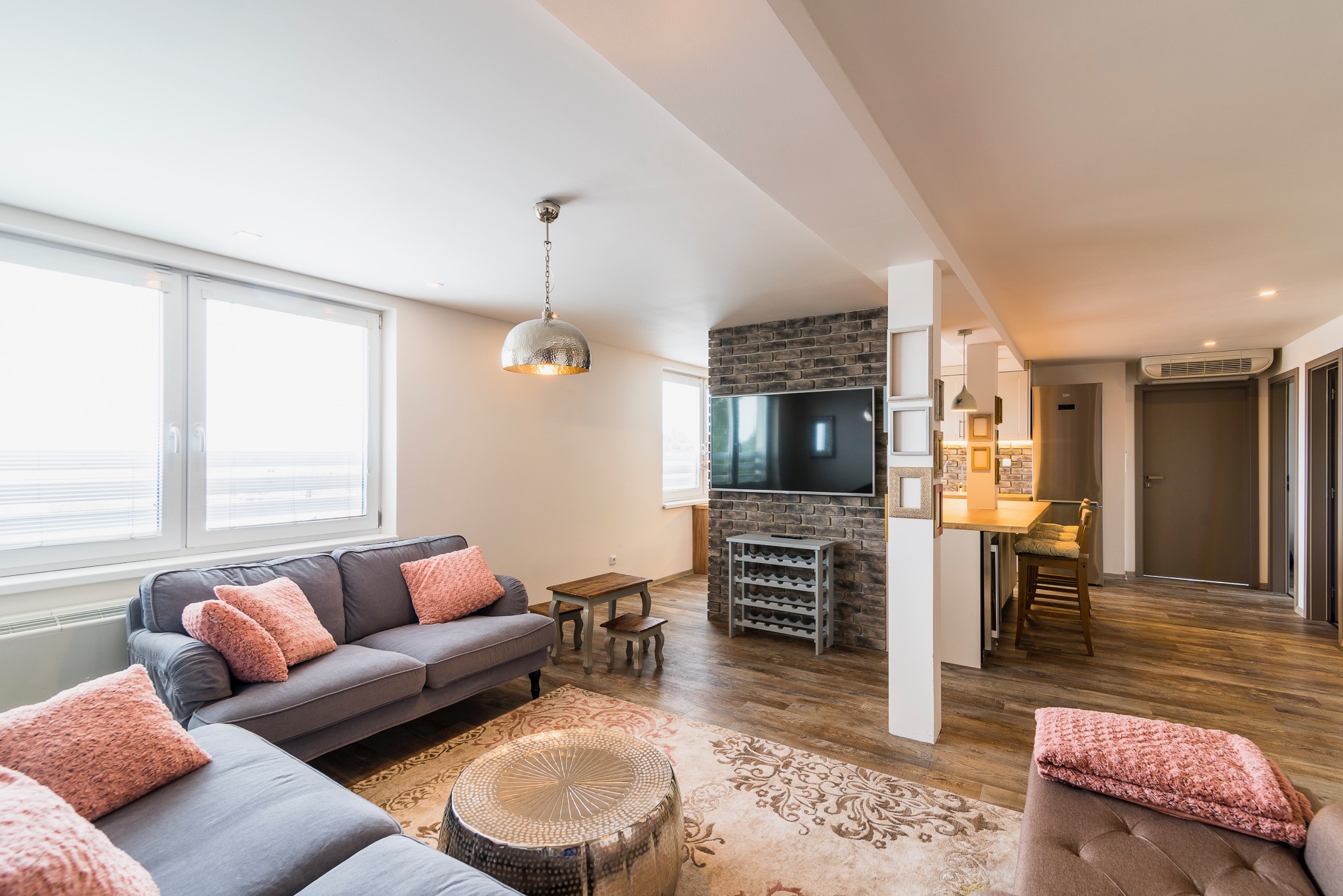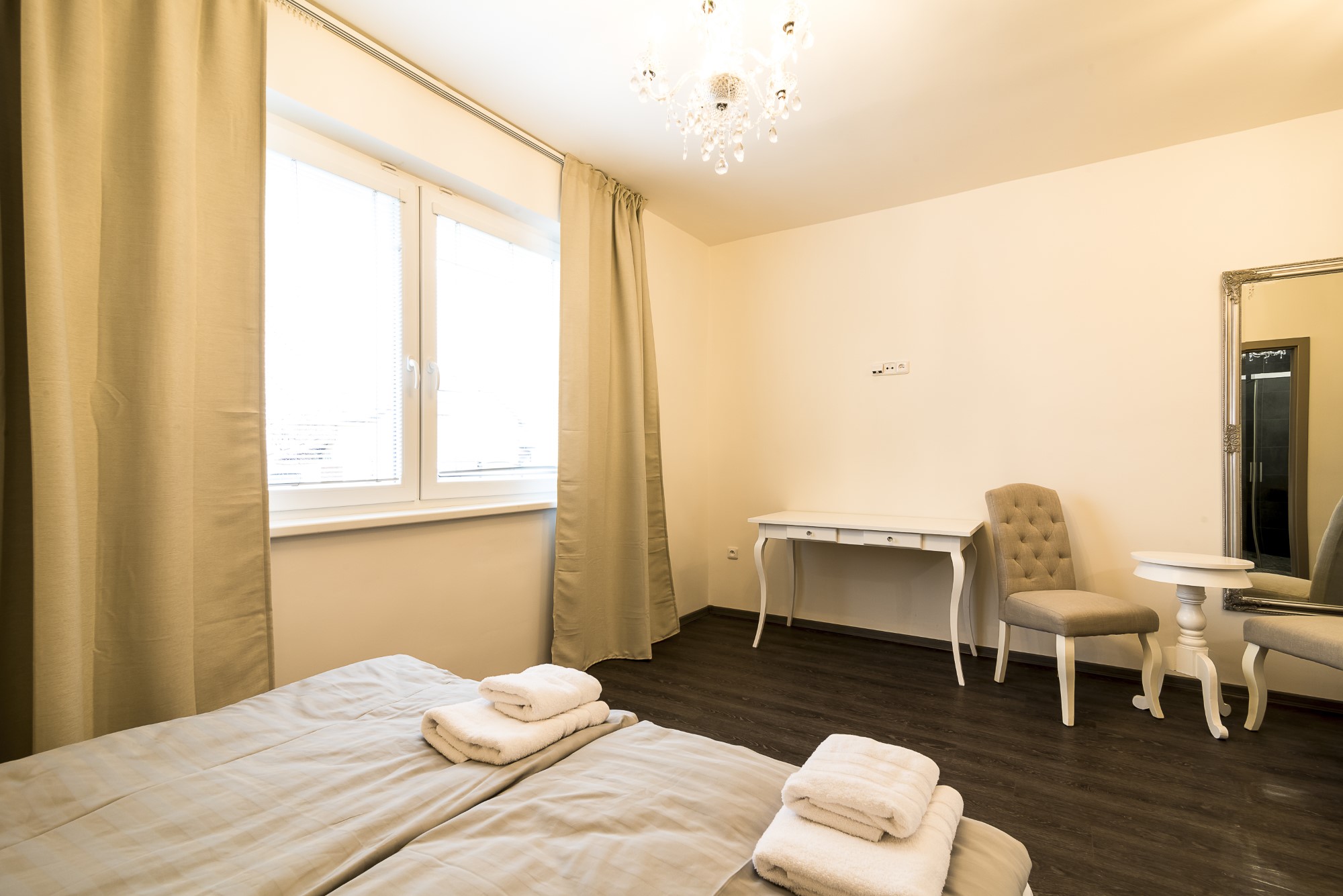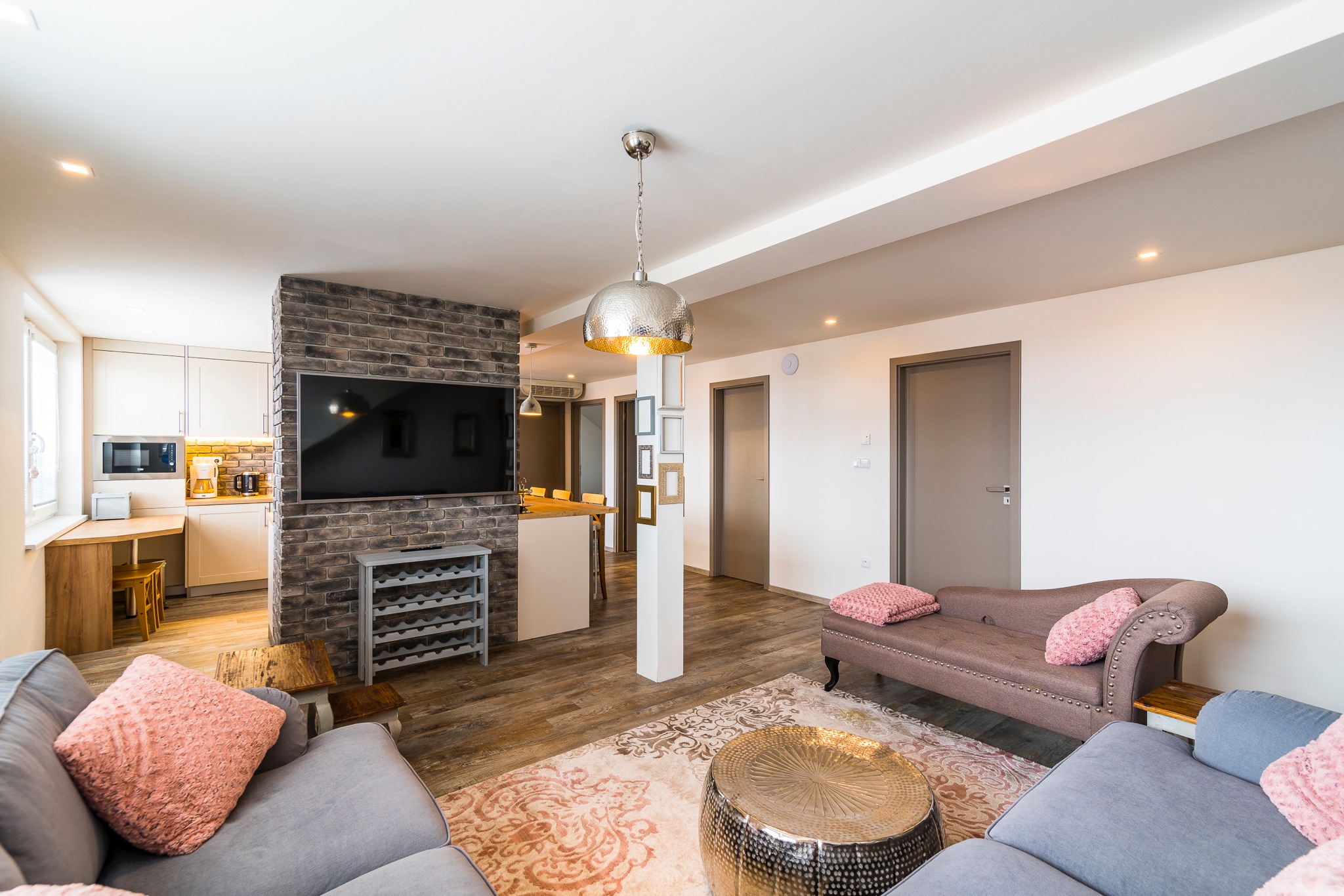 Apartmá s obývacím pokojem, kuchyní a dvěma ložnicemi využijete pro velká rodinná setkání, rozlučky se svobodou, jako svatební apartmá i pro firemní teambuildingy.